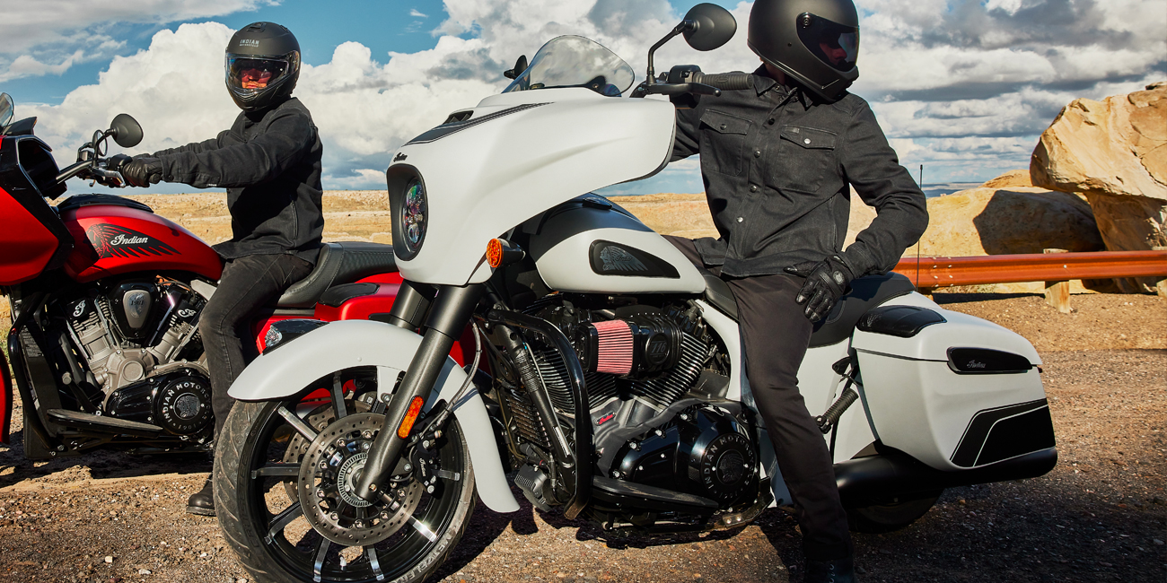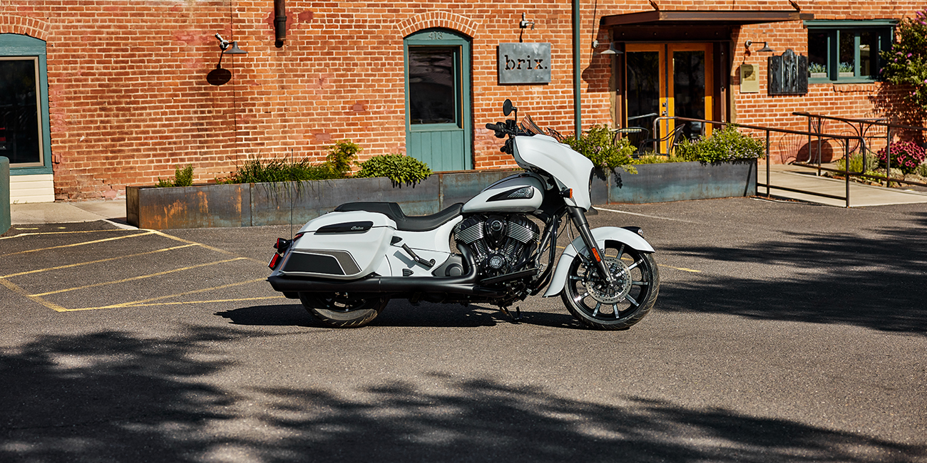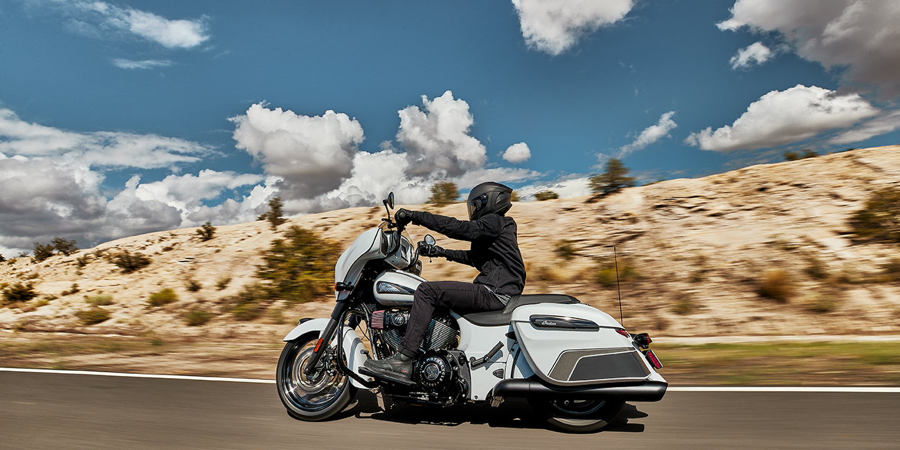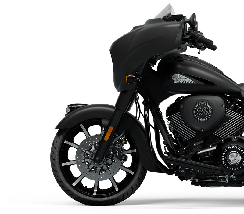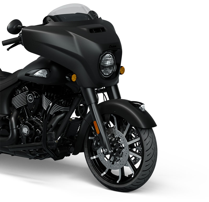 Chieftain Dark Horse levereras med LED-belysning, nyckelfri tändning, farthållare, fjärrlåsta packväskor, ABS och däcktryckövervakning som standard.