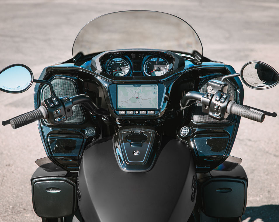 | Ride Command® | 7-tums skärm fabriksinstallerad med GPS-navigering, Apple CarPlay®, Bluetooth®-anslutning, konfigurerbara mätare, körstatistik och mer |
